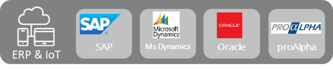 Podpora za: SAP, Microsoft Dynamics, Oracle in proAlpha ERP & IoT orodja.