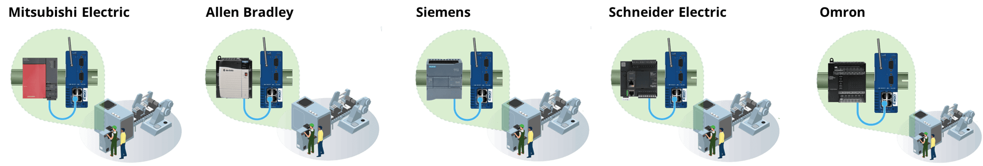 Vgrajeni gonilniki omogočajo zajem TAGov iz registrov PLC krmilnikov različnih proizvajalcev, kar omogoča hitro integracijo opreme. Dodatno programiranje in kode niso potrebne. Povezljivost za Mitsubishi Electric, Siemens, Omron, Allen Bradley, Schneider, Hitachi, ABB, Vipa, ODVA, Modbus, Weintek, Beckhoff, B&R, Crouzet in druge znamke. Ewon Flexy se s pomočjo vgrajenih gonilnikov povezuje neposredno v register PLC krmilnika.