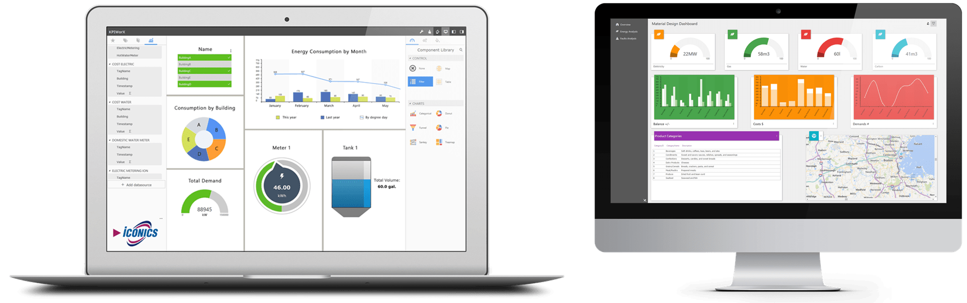Iconics nudi napredne 2D in 3D SCADA rešitve za vse vrste proizvodenj in za vse vrste objektov (od proizvodnih obratov do predorov, mostov in bolnic). Na voljo so različni moduli za različne potrebe vizualizacije.